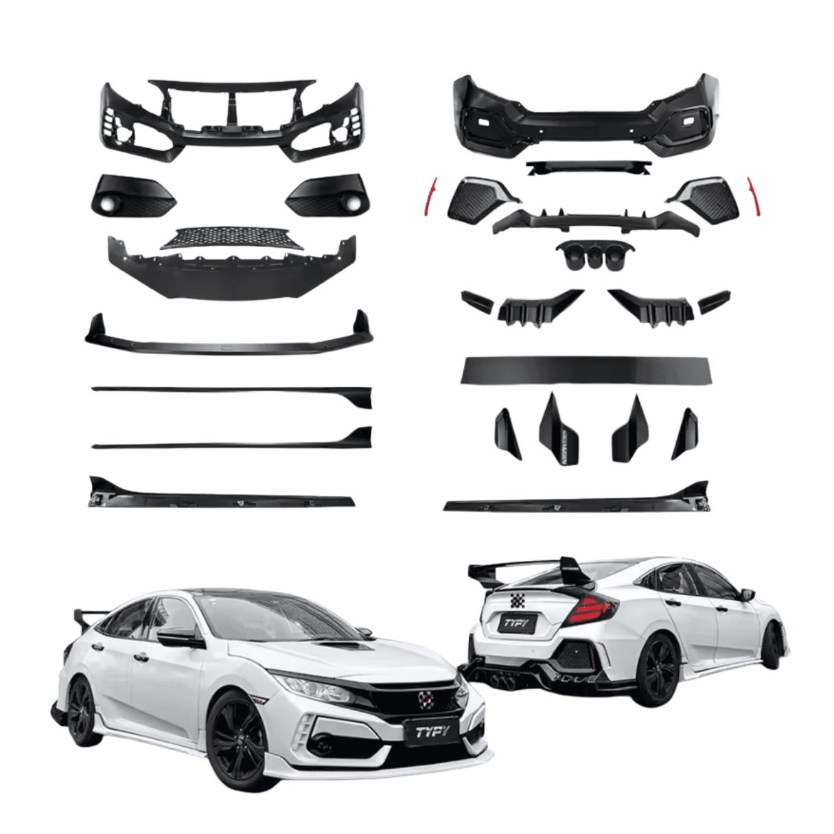 Bodykit Estilo Type R para Honda Civic 4 Puertas Sedán 16-20