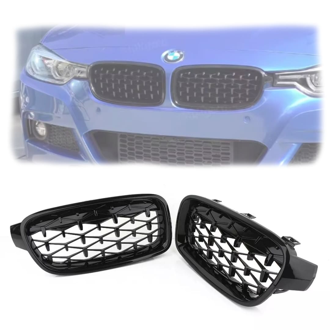 Parrilla Kidneys Riñones Diamantes BMW Serie 3 F30 Negra Brillante