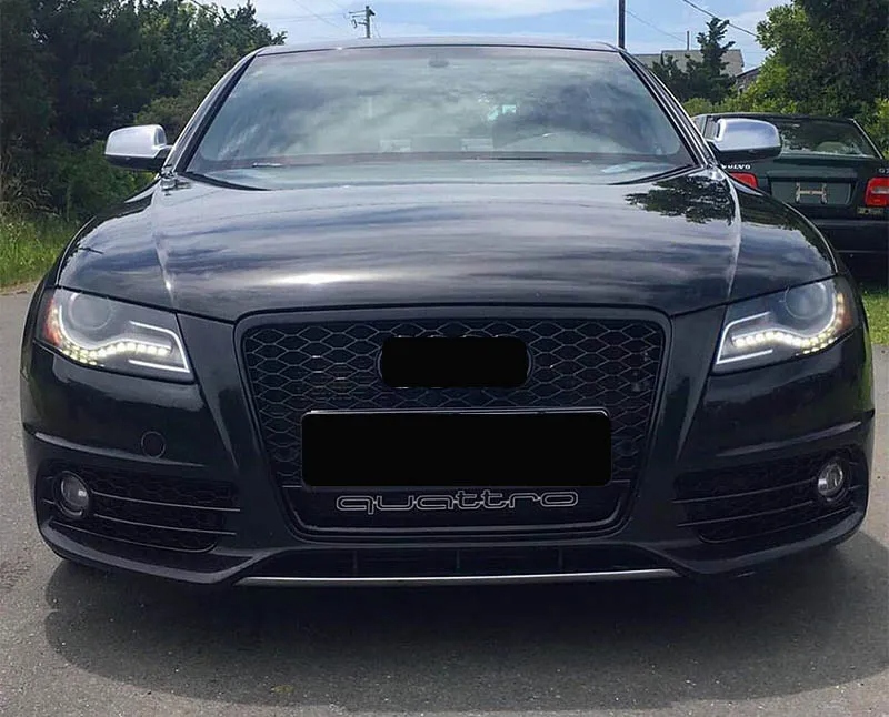 Transformá el frente de tu Audi A4 B8 con esta parrilla frontal estilo RS4, diseñada para lograr una estética deportiva, agresiva y moderna. Su combinación de malla negra tipo panal, marco negro y detalle “quattro” inferior aporta un look sobrio y contundente.